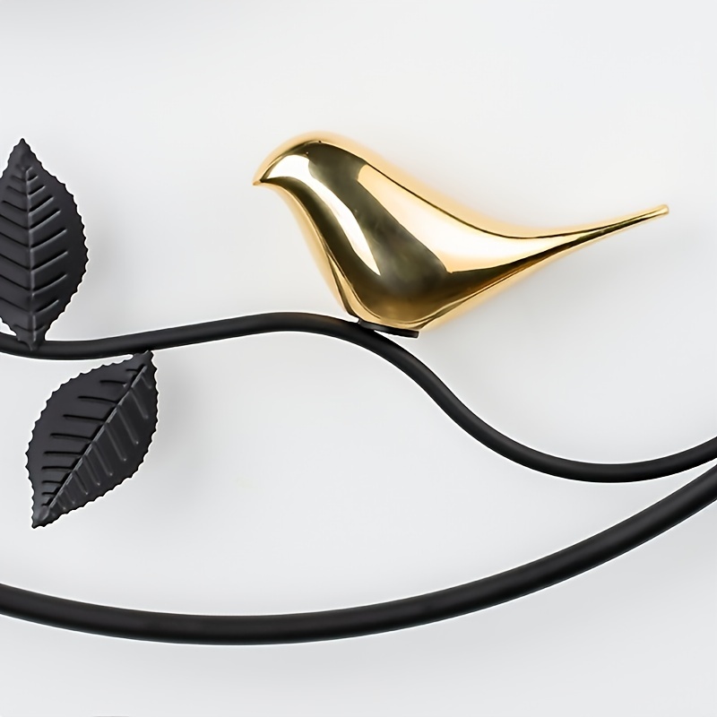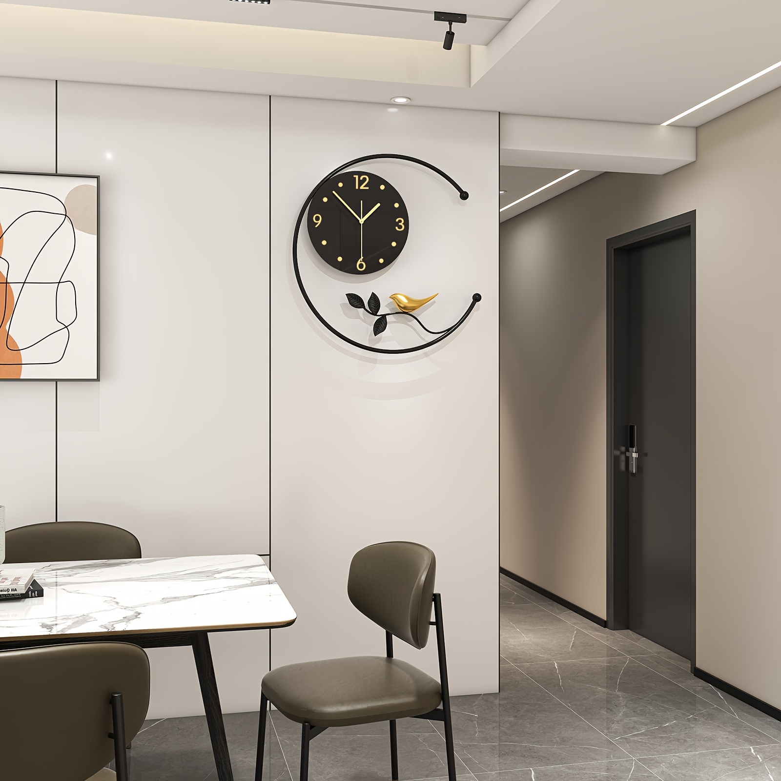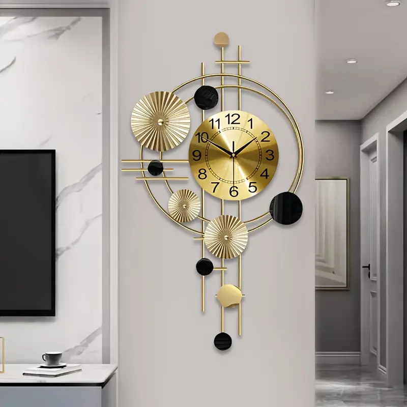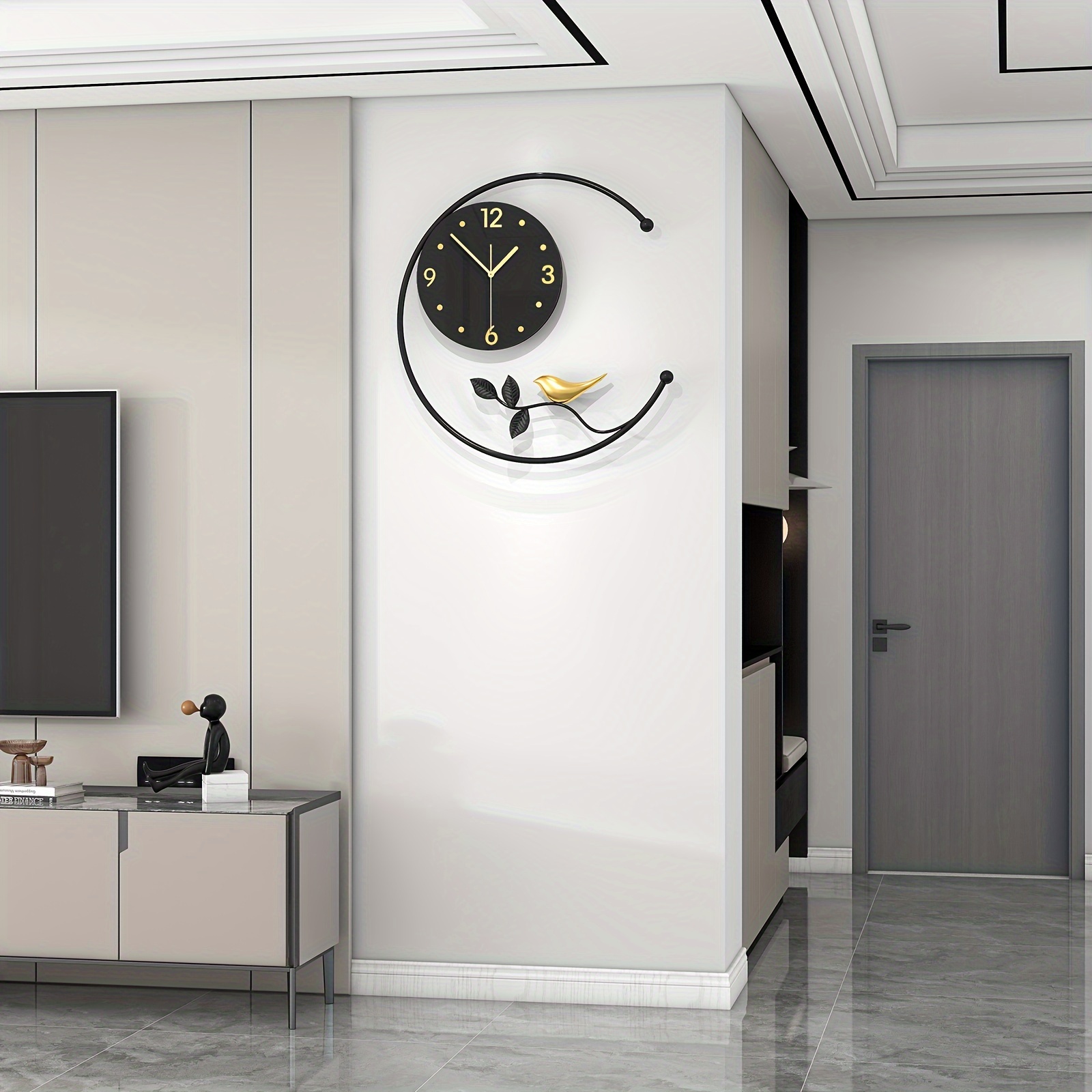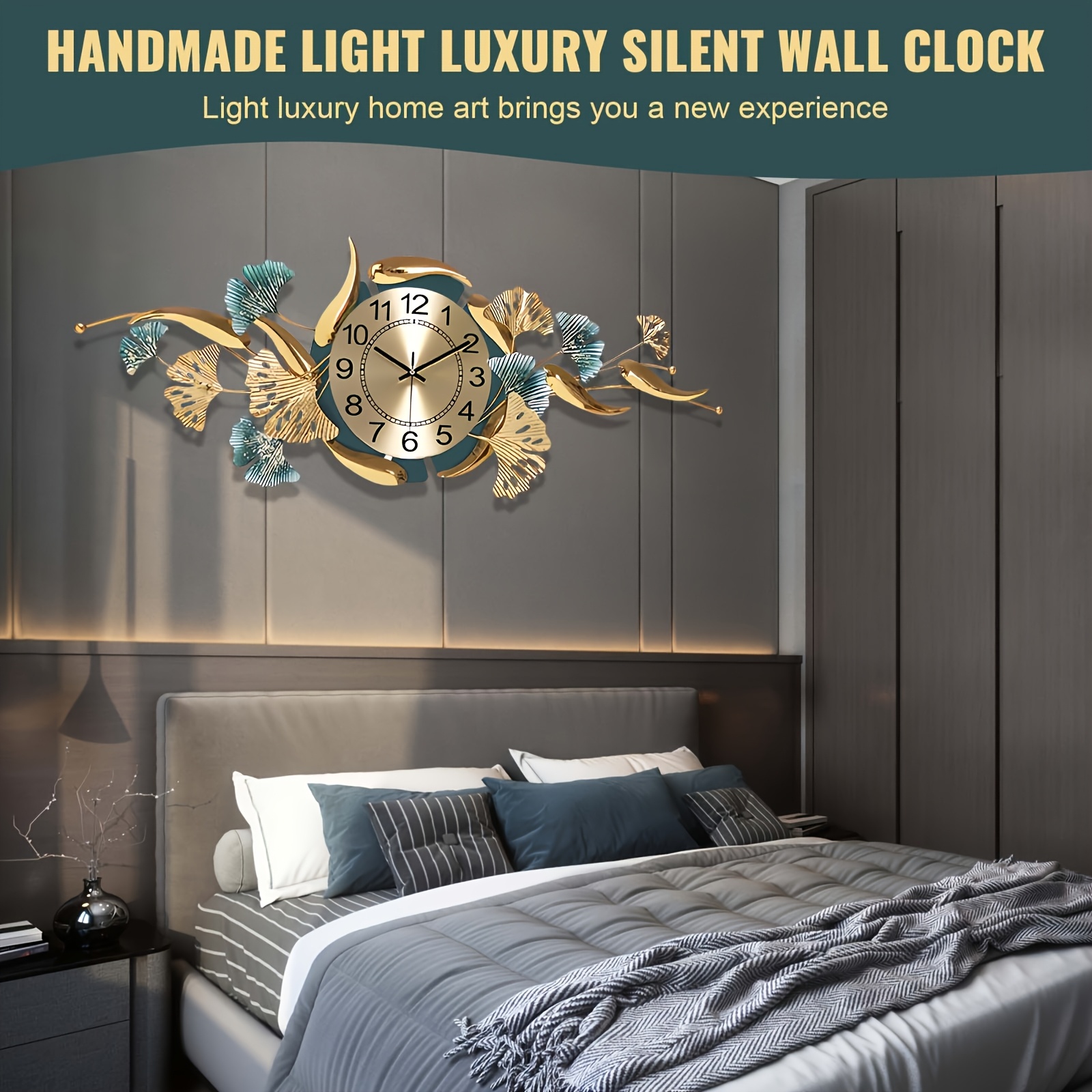 Large Modern Minimalist Ginkgo Leaf Wall Clock - Silent Non-Ticking Digital Clock with Golden Hands & Black stripes, Battery-Free