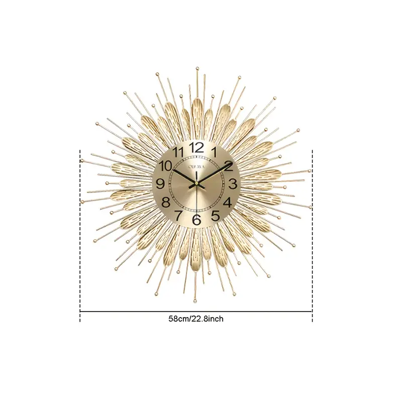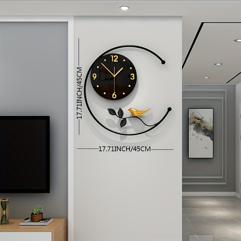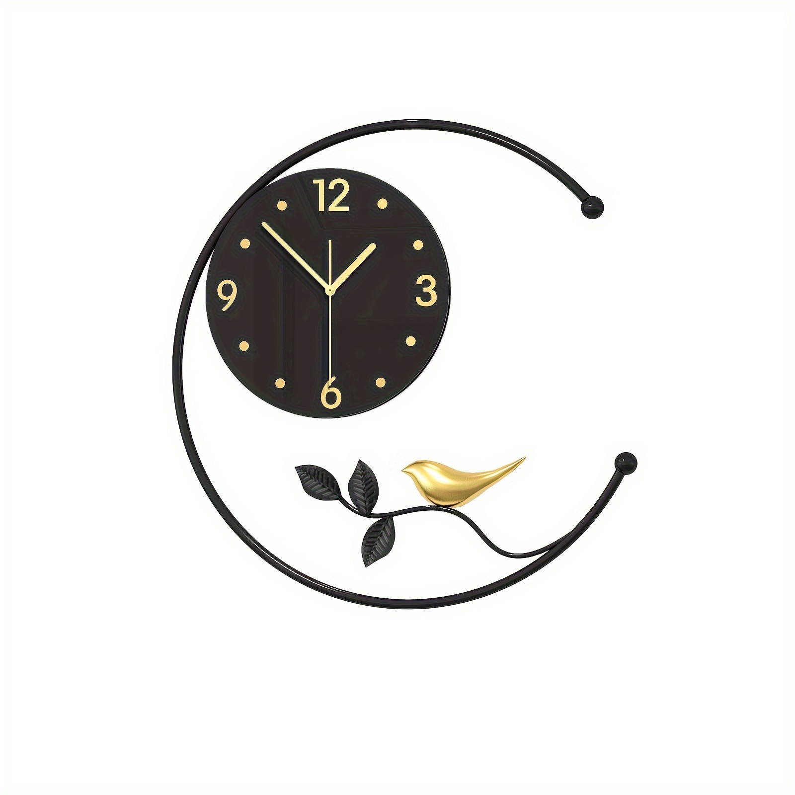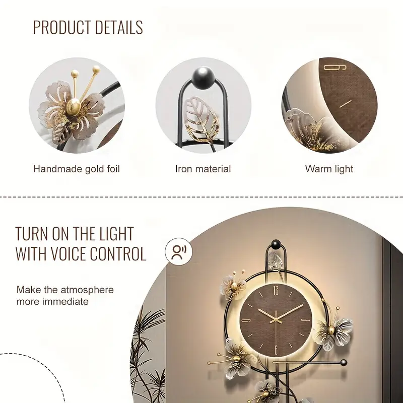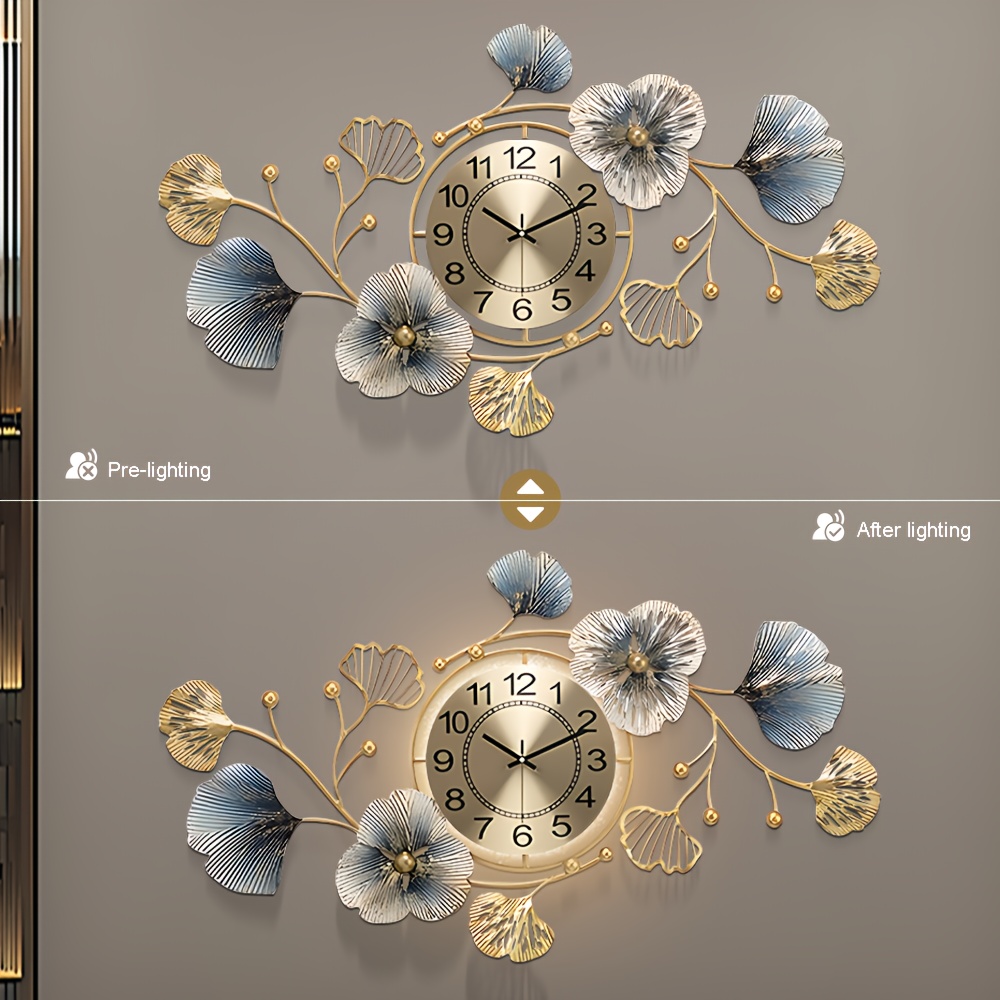 Large Metal Leaf Hanging Clock, Elegant Floral Theme Decorative Watch, 23x23 Inch Creative Irregular Shape Modern Living Room Hanging Clock