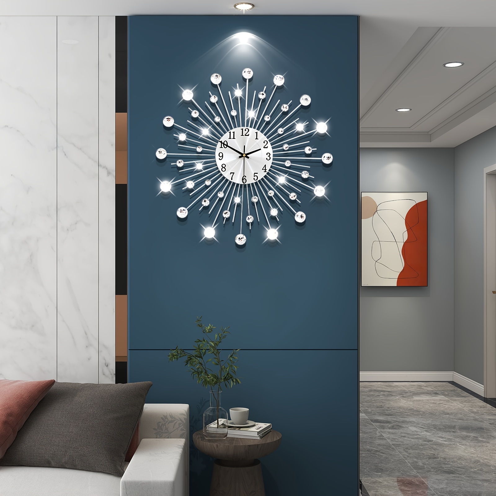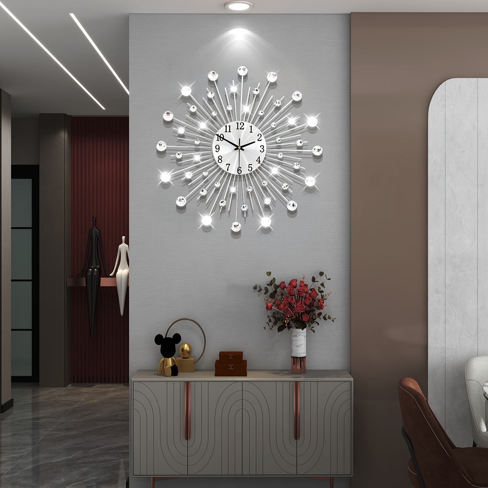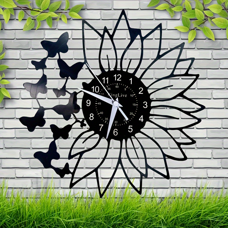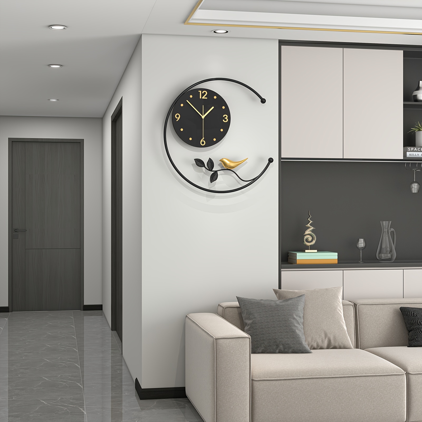 Large Metal Leaf Hanging Clock, Elegant Floral Theme Decorative Watch, 23x23 Inch Creative Irregular Shape Modern Living Room Hanging Clock