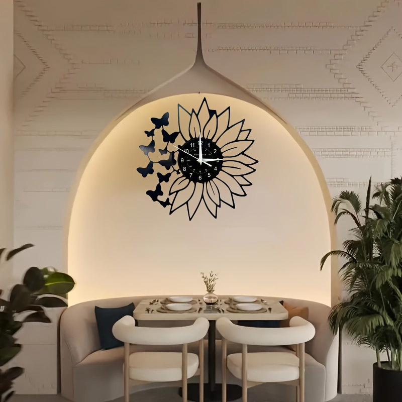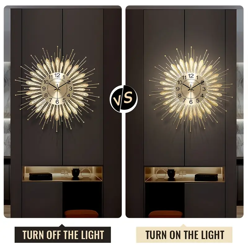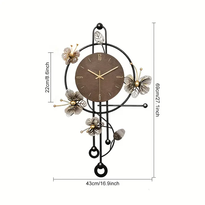 Large Metal Wall Clock with LED Light - Brown Butterfly Design, Silent Non-Ticking, Irregular Shape, Elegant Decorative Wall Art