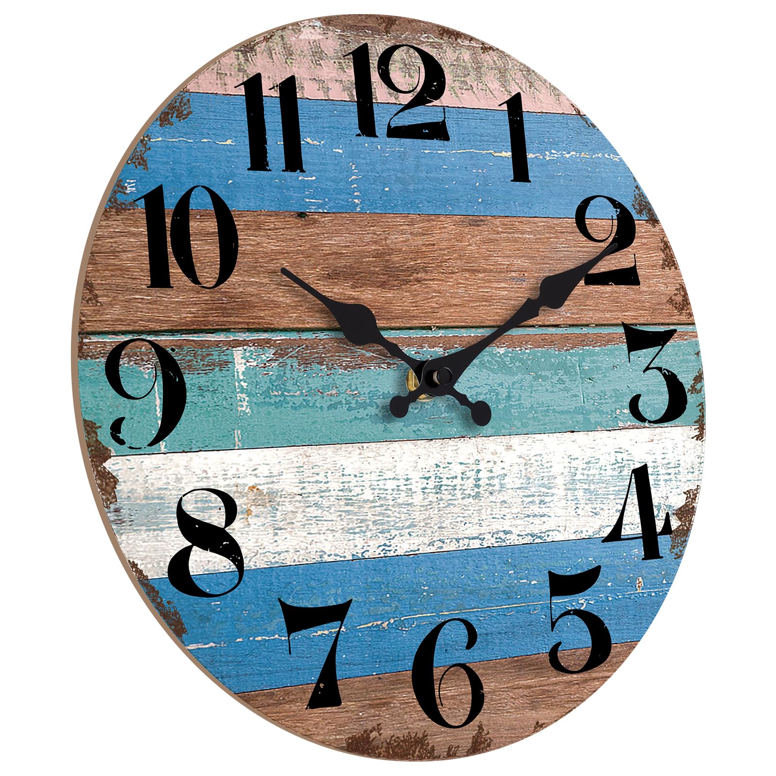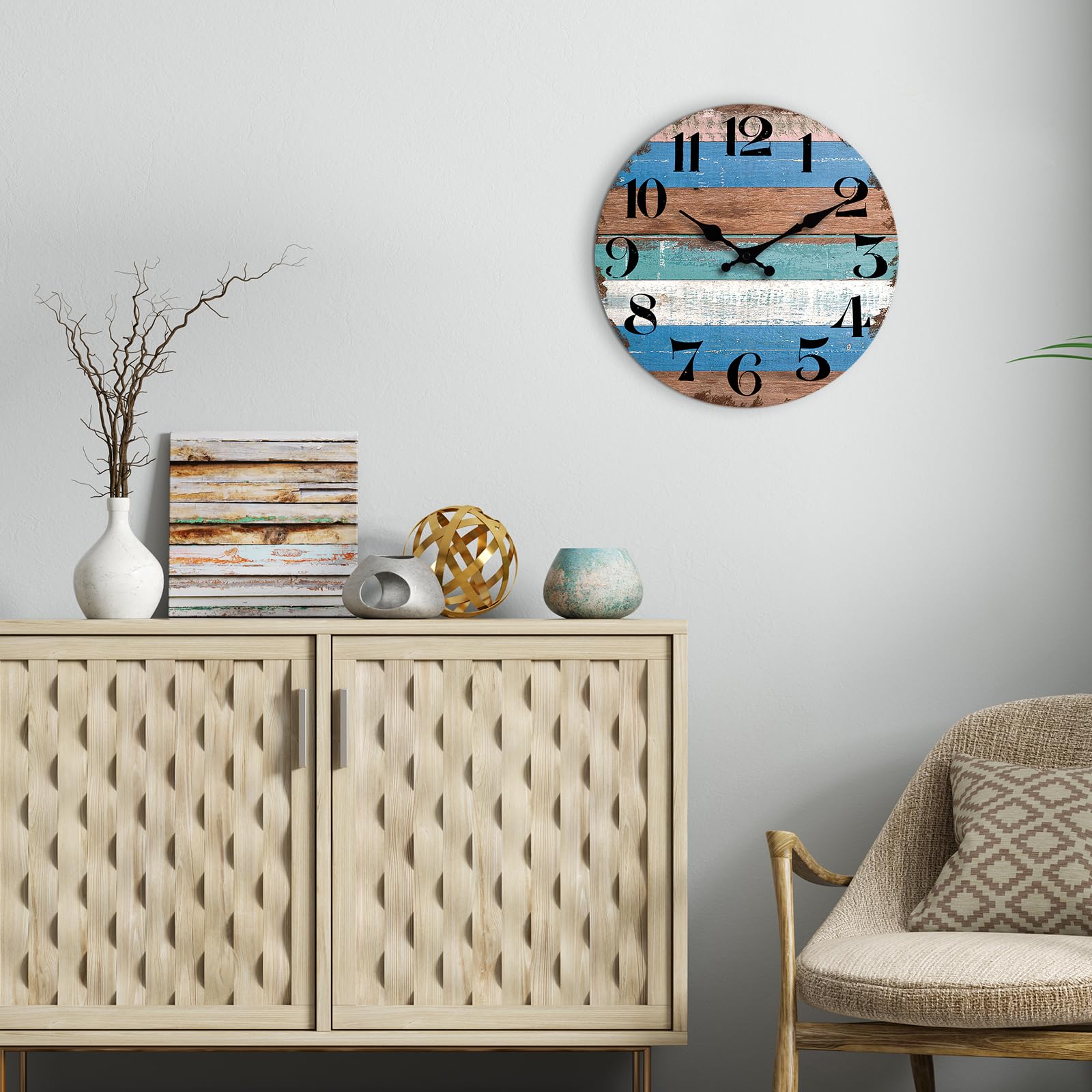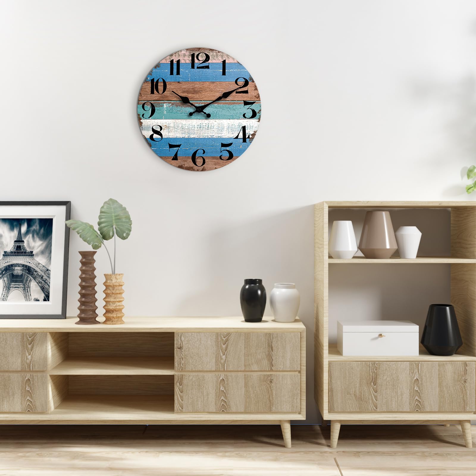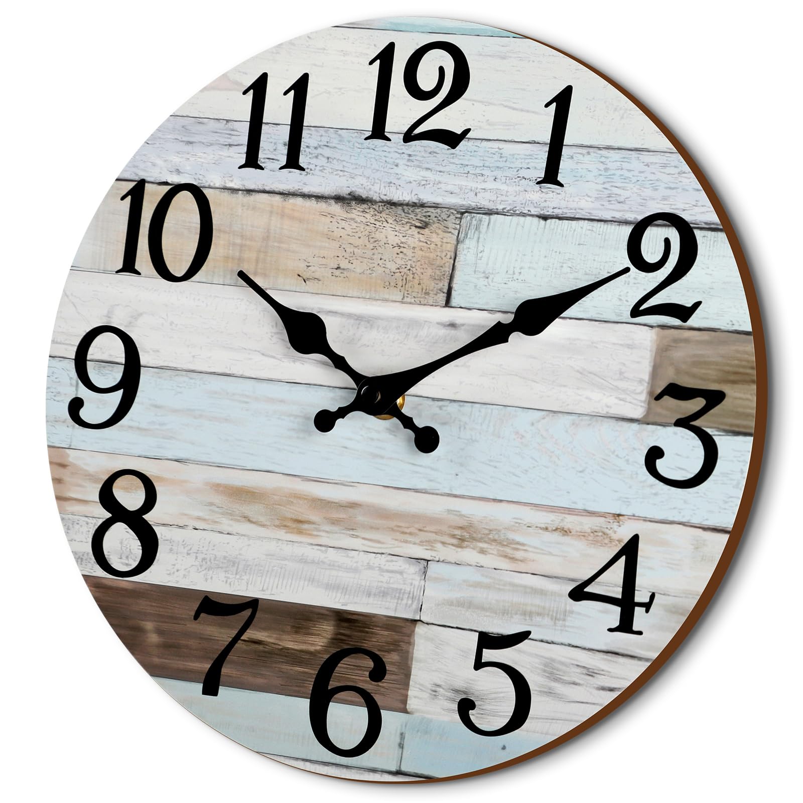 Wall Clock 10 Inch Countryside Wall Clock Rustic Wooden Wall Clocks Retro Vintage Style Silent Non Ticking Battery Operated Decorative for Living Room,Kitchen,Bedroom,Office,Bar(Blue)